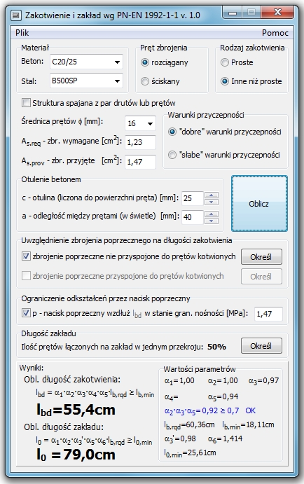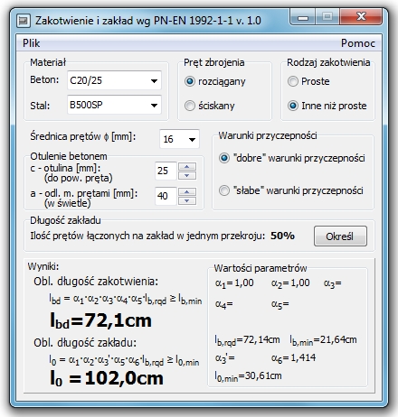 Zakotwienie i zakład wg PN-EN 1992-1-1 ver. 1.0 |